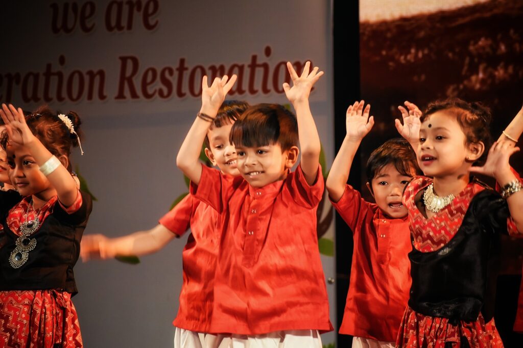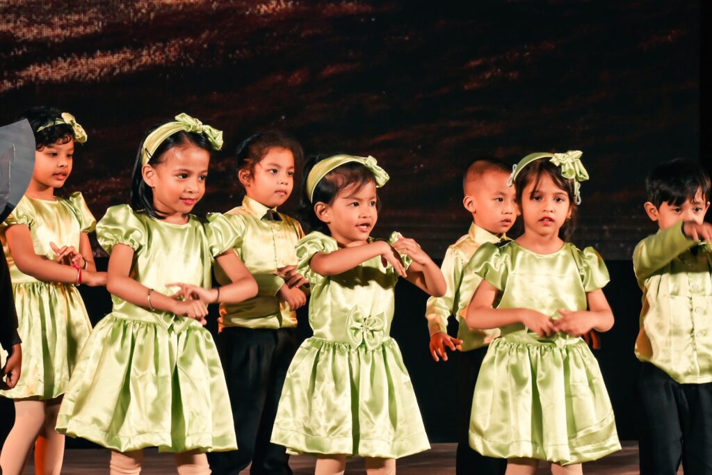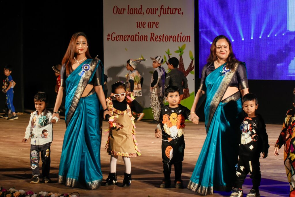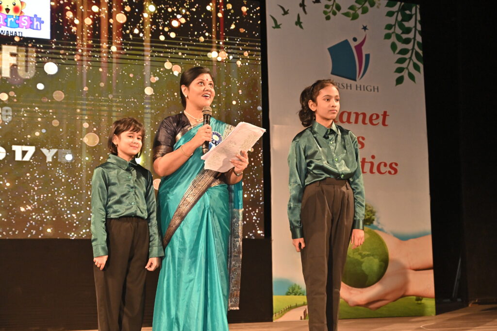 The students enthralled the audience , showcasing on environment emphasizing on non-use of plastic products. The toddlers performed a ramp walk showing how to make best out of waste products. The PG- II children from Zoo Road and Six Mile branches showcased beautiful dance performances highlighting vital environmental themes. Through graceful dances, they depicted the harmful impact of deforestation. One dance illustrated how rain is crucial for cultivation and sustaining life. The children also performed melodious songs emphasizing the significance of birds and animals in maintaining ecological balance and protecting the environment. Their performances sent a strong message about the need to care for nature and inspired everyone to take small steps towards a greener, healthier planet for future generations.The students showcased the cleanliness habits through mime acting. They depicted Sri Jadav Payeng ( the forest man of India) as the role model. Also the protection of Hargila (Greater Adjutant Stork) by renowned conservationist Dr. Purnima Devi Barman was performed as a skit by the students.